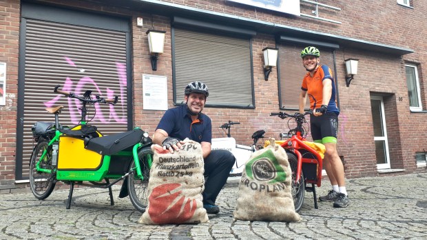 Gestern Abend sind sie angekommen, unsere Biolandkartoffeln vom Schauhof aus Willich – frisch vom Feld geerntet und von Uwe und Stefan vom ADFC mit dem Lastenrad zu uns gebracht. Ab 14 Uhr gibt es leckere Reibekuchen, alle Zutaten sind aus Ökologischem Landbau. Und vegan.