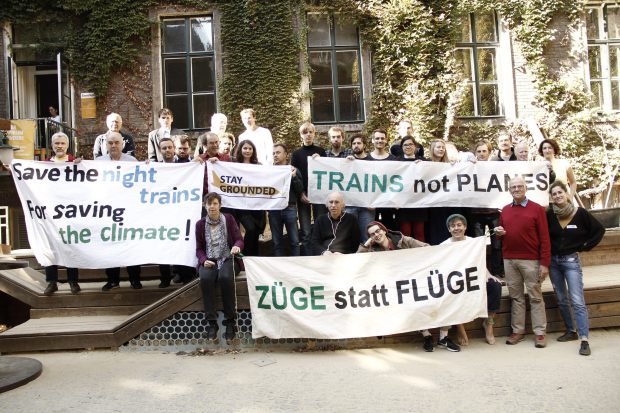 All dies könnten Schritte in die Richtung sein, die beispielsweise das globale Netzwerk „Stay Grounded“ („Am Boden bleiben“) anstrebt. Es setzt im Kampf gegen den zerstörerischen Flugverkehr nicht auf moralische Appelle, sondern auf strukturelle Veränderungen. Die vermeintliche Lösung, sich für jede Flugreise mit Kompensationszahlungen freizukaufen, lehnt das Netzwerk als Greenwashing ab: „Die Kompensation ist ein moderner Ablasshandel: Sie ist wirkungslos, führt zu Landnahme im globalen Süden und löst das Problem nicht.“ In einem Positionspapier fordert Stay Grounded eine „Wirtschaft der kurzen Wege“ und einen „gerechten Übergang“ („Just Transition“) zu einem „Ende der Abhängigkeit von den umwelt- und klimaschädlichsten Transportarten“. Unterzeichnet haben aus Deutschland unter anderem die Umweltverbände BUND und der Dachverband DNR sowie das globalisierungskritische Netzwerk Attac.