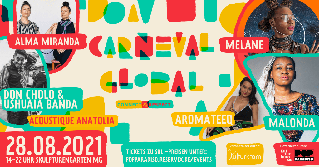 Carneval Global ist ein Musikfestival für Global Sounds und möchte Menschen ermutigen sich gemeinsam mit Rassismuskritik & Allyship (Ally=Verbündete*r) in unserer Gesellschaft auseinander zu setzen.