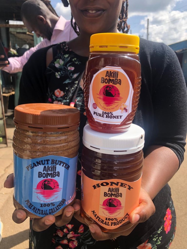 In Kibra, dem größten Slum Afrikas, eröffnen drei Frauen ihren eigenen kleinen Laden – mit Honig und Erdnussbutter aus der Region. Unterstützt durch die Akili Bomba Mental Health Initiative und einer Spende von Eine Erde e.V. an die Initiative in Höhe von 350 €.